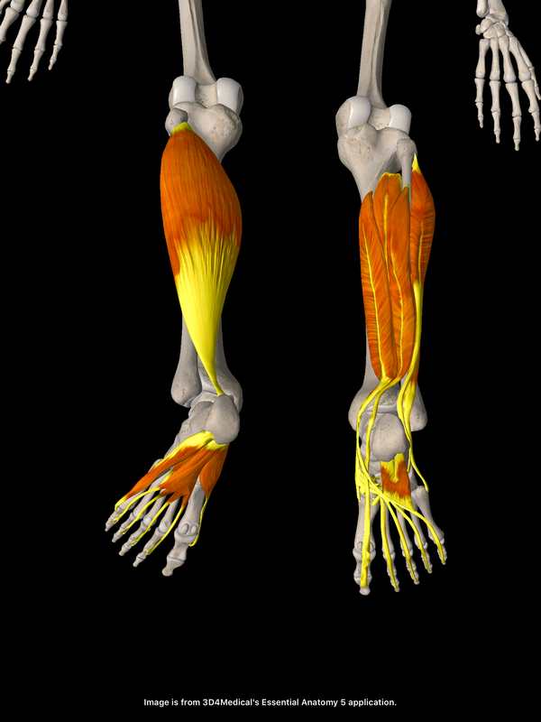 上のイラストの筋肉は膝関節を跨いでいませんので、膝をピンと伸ばしたアキレス腱伸ばしのストレッチでは主に腓腹筋という膝関節を跨ぐ筋肉のストレッチになり上のイラストの筋肉群をピンポイントでストレッチすることができません。