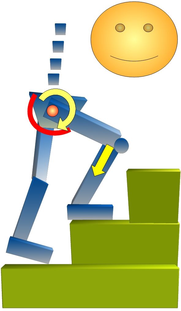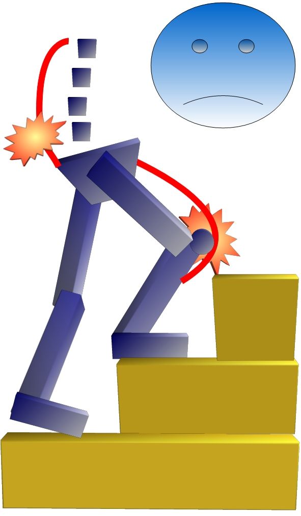 骨盤後傾タイプの人は、階段をのぼる動作などで、股関節の筋肉を使わずに、すでに屈曲している腰椎付近の筋肉を用いる傾向があります。